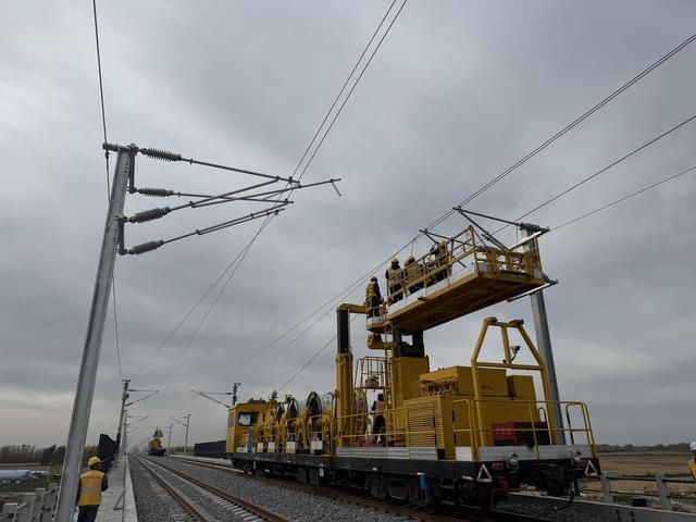 为攻克寒地施工难题,项目团队持续优化技术方案,打出“材料+设备+技术”组合拳:选用耐低温、抗腐蚀的特种接触线材料,搭配智能化监测设备实时追踪架设精度,确保每一道工序都严格符合规范标准。